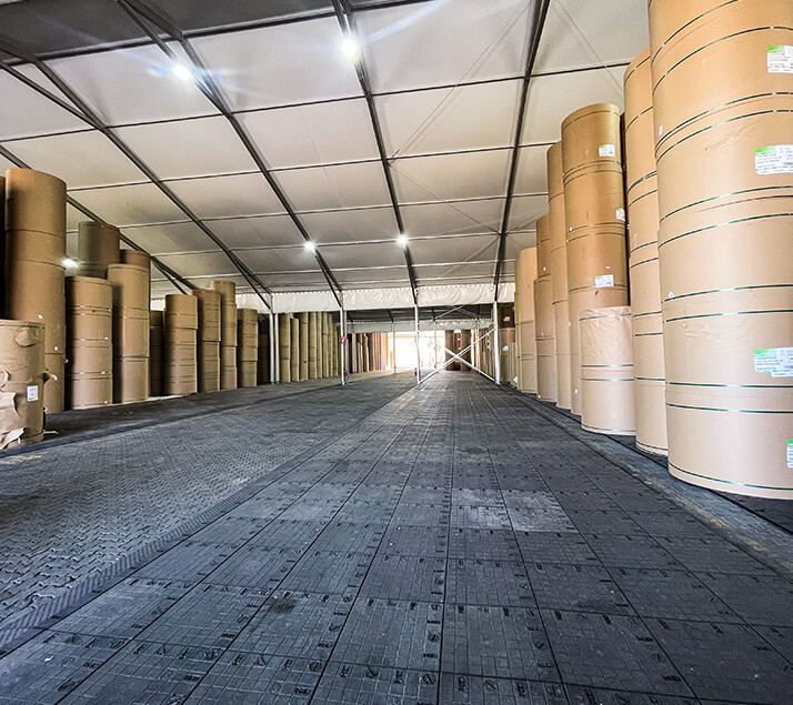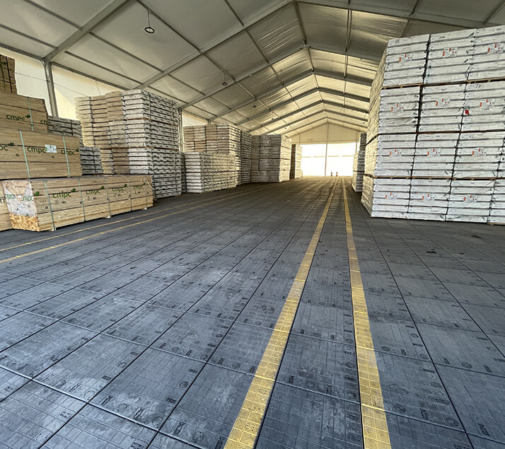 Los pisos DEX® son la solución ideal para bodegas industriales habilitadas con estructuras modulares en terrenos al aire libre. Diseñados para adaptarse a diversas condiciones, nuestros pisos permiten nivelar y cubrir superficies irregulares, proporcionando una base robusta y confiable para las operaciones de almacenaje.