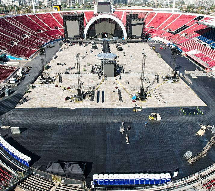 La rápida instalación de nuestros pisos es ideal para los tiempos ajustados de la producción de eventos.