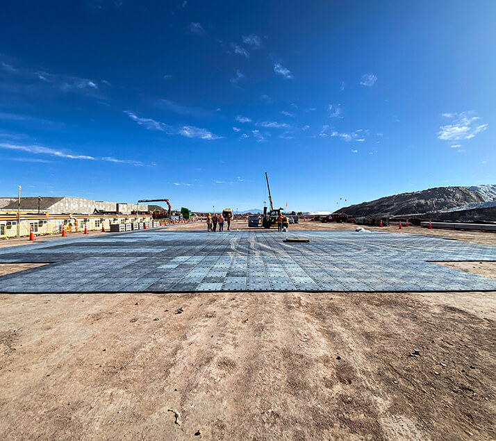 DEX® Elephant y DEX®Rhino son ideales para proyectos que requieren el tránsito de maquinaria pesada como orugas metálicas, camiones CAEX, camiones tolva, palas de arrastre y grúas horquilla entre otras. No sólo resisten el peso y las vibraciones de estos equipos, sino también el desgaste por giros de neumáticos y cargas puntuales con una capacidad de carga de hasta 1020 ton/m2.