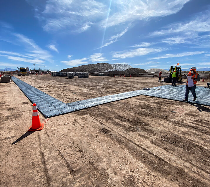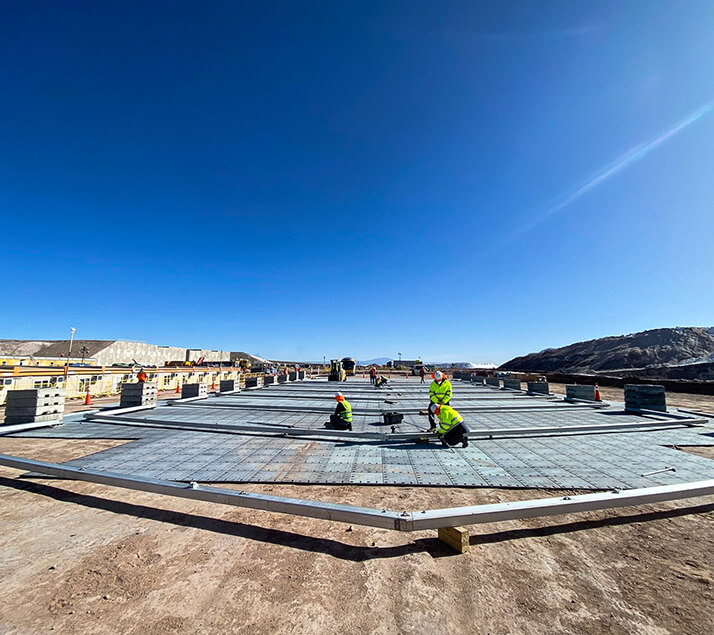 Aquí nuestro piso DEX® Buffalo es la estrella, al ser la solución ideal para habilitar zonas de tránsito peatonal en faenas de construcción. Diseñado para brindar comodidad y seguridad, proporciona una superficie estable y antideslizante garantizando el bienestar de los trabajadores en terrenos irregulares.